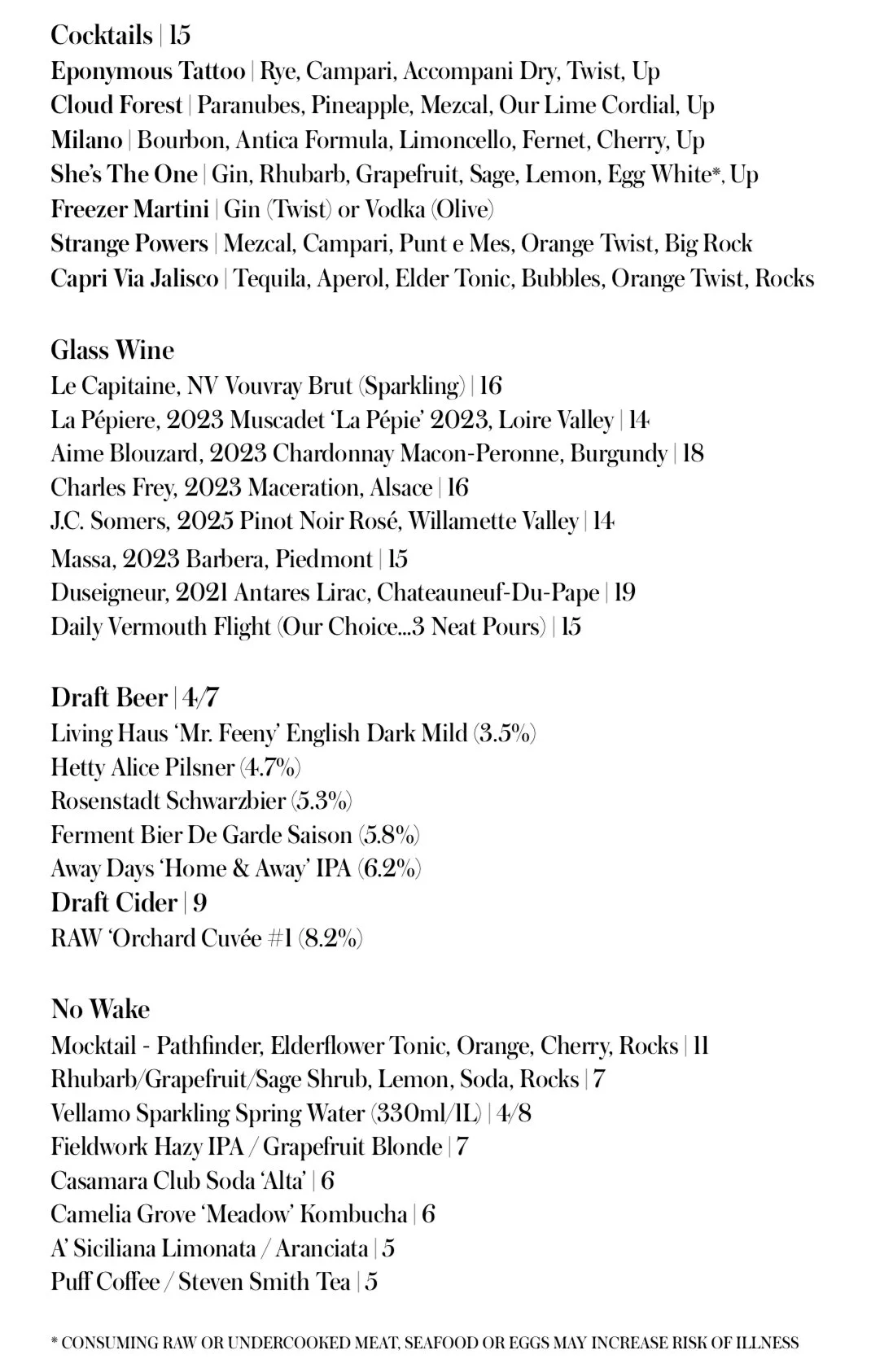 CURRENT MENU | POSTED APRIL 16 2026